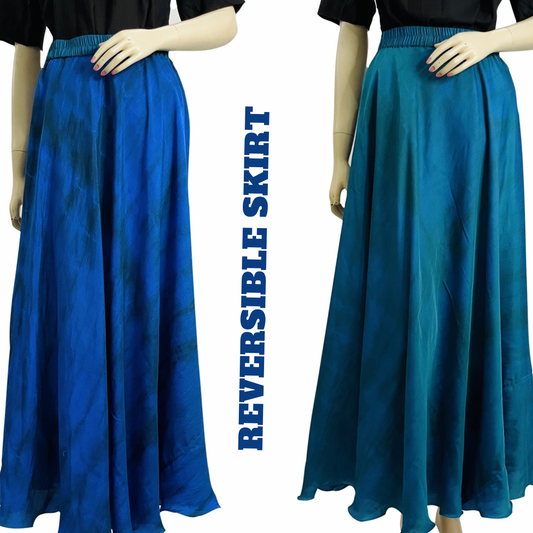 Reversible Skirt, Tie dye , Handmade, Blue Viscose Silk, Ankle Length, Casual Skirts, Stylish Boho Fashion, Chic/Gift For Her Free shipping