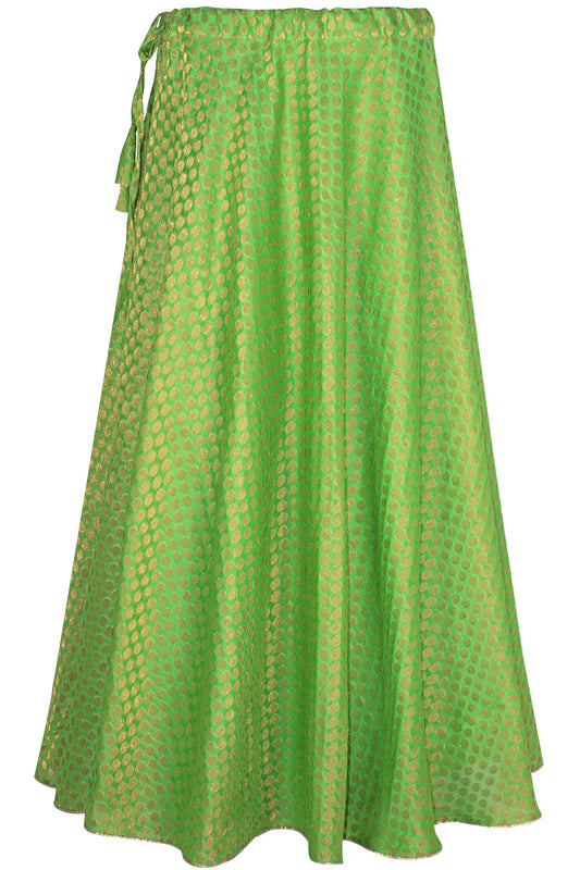 Orange Banarasi Lehenga Skirt Festive Indian Zari Brocade Border Long Bias Cut Drawstring Party Ethnic Polkadot Traditional Skirts ACS21245