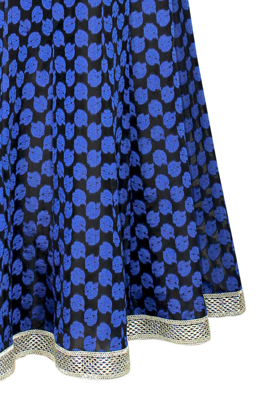 Black and Blue Banarasi Lehenga Skirt With Silver Border