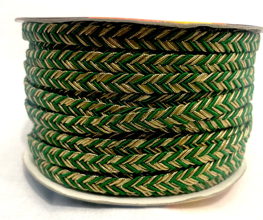 Golden Braid Border, Green And Golden, Laces for Dress, Home Décor, Shoe, Bags, Hats, DIY, Handmade, 0.2 inch Broad