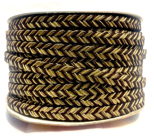 Golden Braid Border, Brown And Golden, Laces for Dress, Home Décor, Shoe, Bags, Hats, DIY, Handmade, 0.2 inch Broad