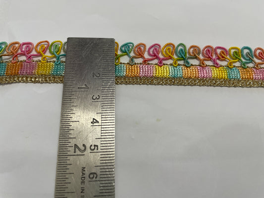 Multicolor Zigzag 1 Corded lace with Pastel Light color, 1.5 inch broad