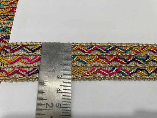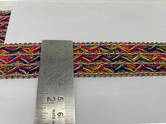 Multicolor Zigzag 2 Corded lace with Bright Solid colors, 1.5 inch broad