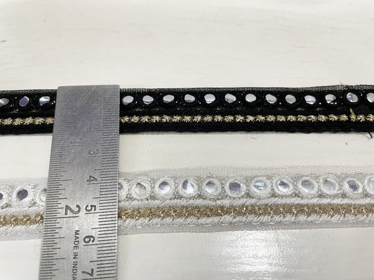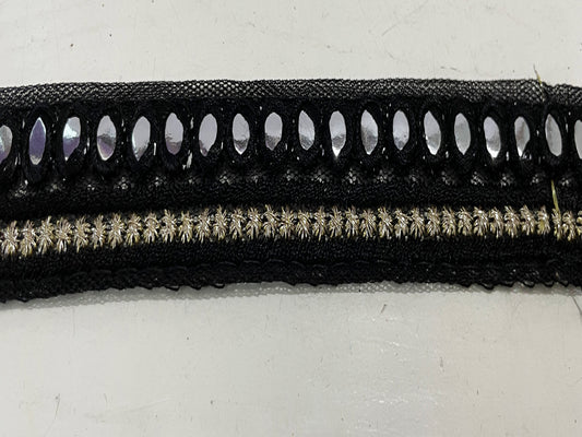 Black embroidered Border with real mirror work , 0.75 inch broad border