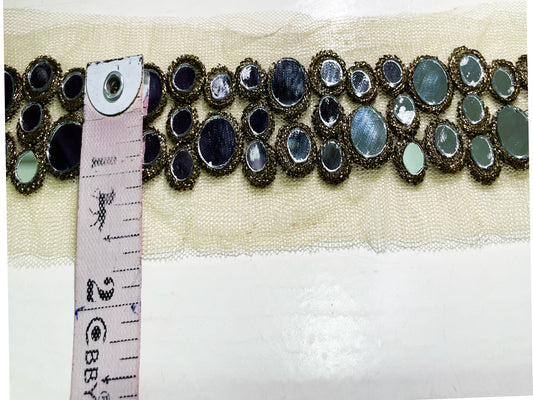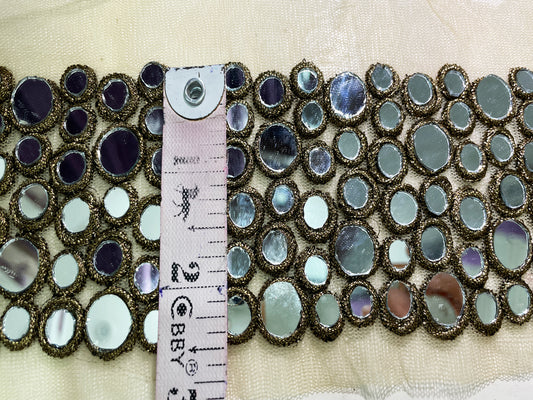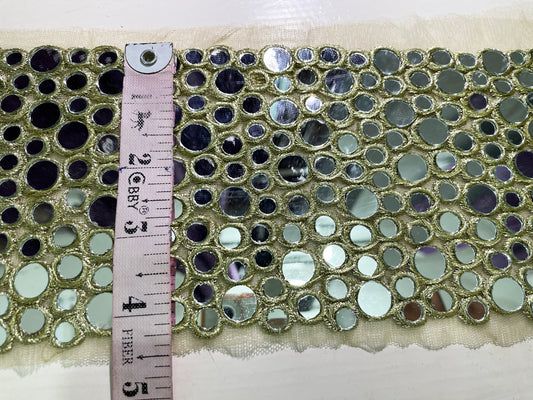 Golden Mirror work border, 3.5 inch broad. Real mirror work