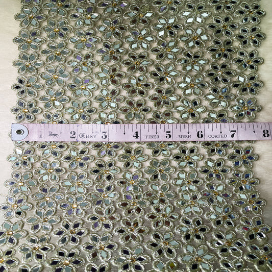 Golden Real Mirror Cutwork Broad Border, 7.5inch Border