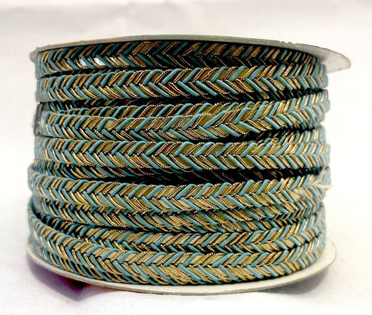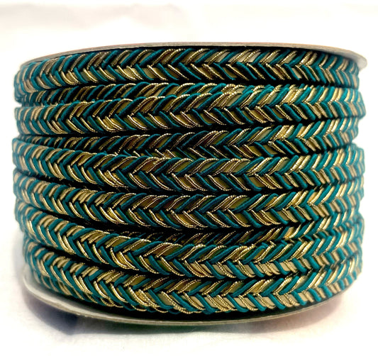 Golden Braid Border, Teal And Golden, Laces for Dress, Home Décor, Shoe, Bags, Hats, DIY, Handmade, 0.2 inch Broad