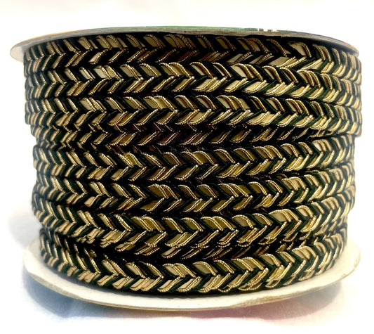 Golden Braid Border, Dark Green And Golden, Laces for Dress, Home Décor, Shoe, Bags, Hats, DIY, Handmade, 0.2 inch Broad