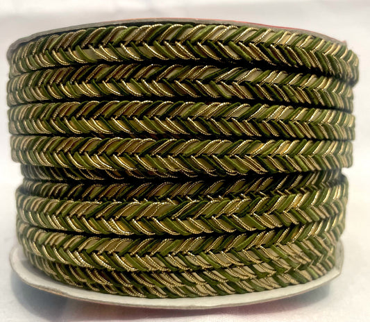 Golden Braid Border, Olive Green And Golden, Laces for Dress, Home Décor, Shoe, Bags, Hats, DIY, Handmade, 0.2 inch Broad