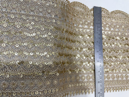 Sequins Scalloped border, 9 inch broad border, Zari border