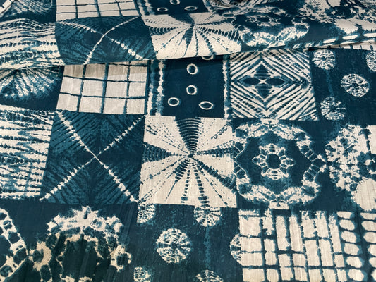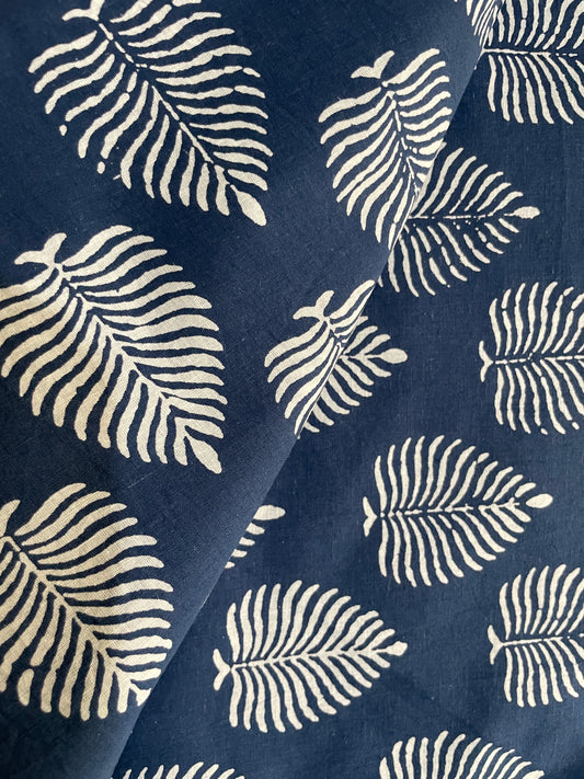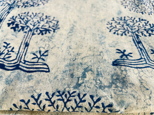 Pure Cotton Cambric Block Print Fabrics, Indigo Tree Garden Print