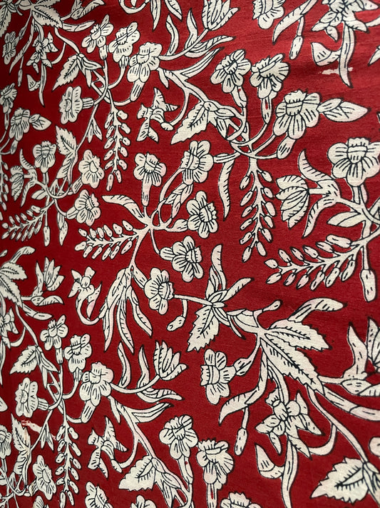 Pure Cotton Cambric Block Print Fabrics, Floral design, Garden Print Maroon