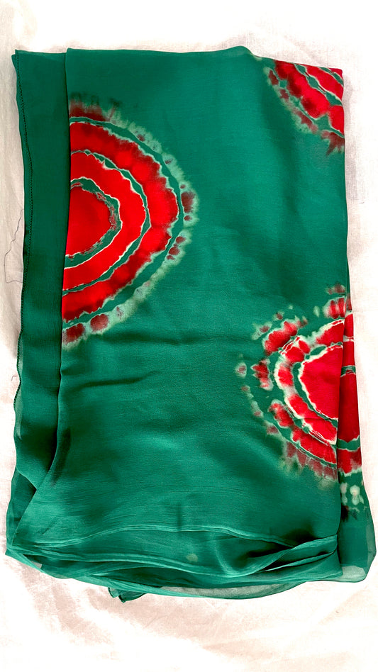 Green and Red Hand Tie Dye on Pure Georgette Fabric,