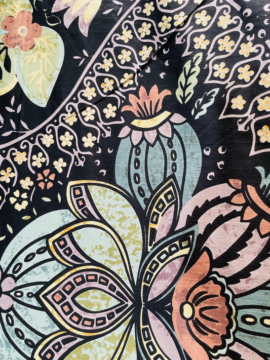 Black Pure Cotton Cambric Printed Fabrics, Colorful Cactus Print, Floral