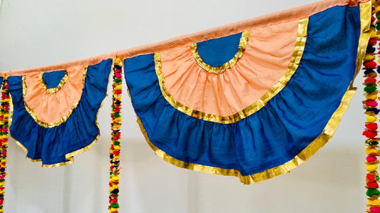 Blue and Peach Color Viscose Silk Fabric Traditional Decor Fan