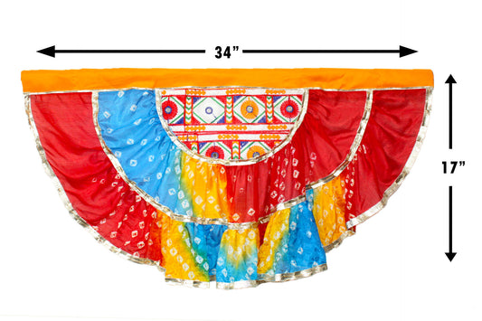 Jaipuri Bandhani Print Traditional Decor Fan with Gujarati embroidery work