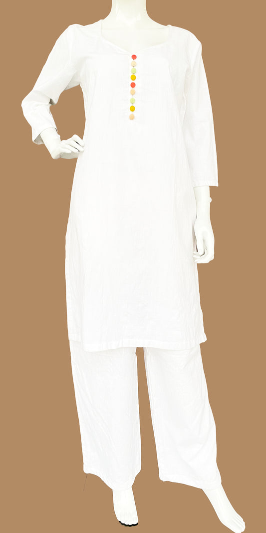 White Pure Cotton kurta Palazzo With Lavender Dupatta
