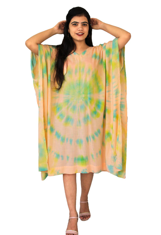 Tie & Dye Rayon Slub Kaftan/caftan Dress Peach color Boho Chic Fashionable Evening Comfortable Maternity
