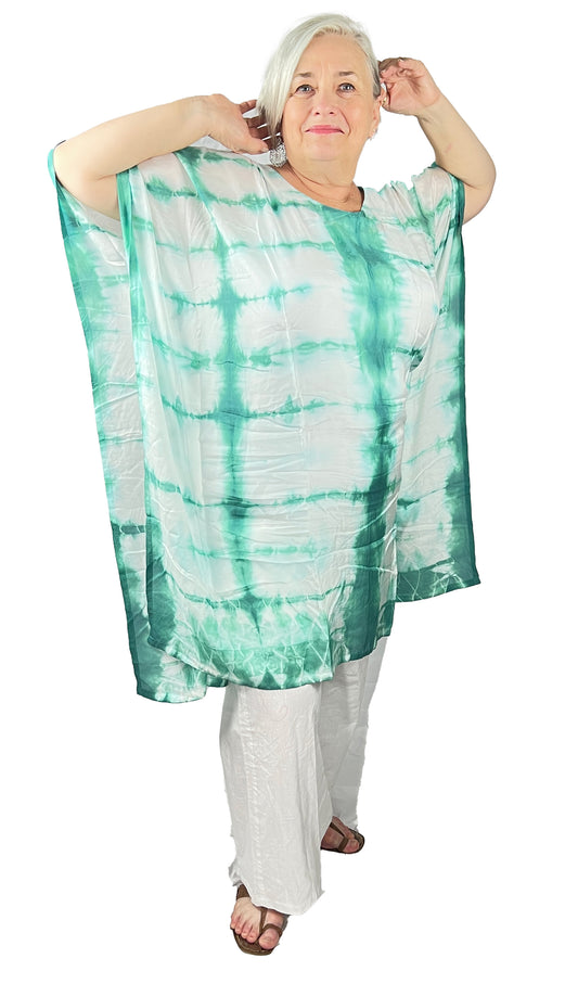 Tie Dye Rayon Kaftan Top, Tricolor Top, Rayon Top