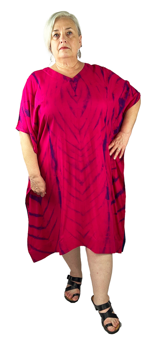 Hot Pink Tie dye Calf Length Rayon Kaftan