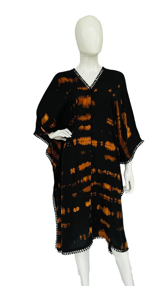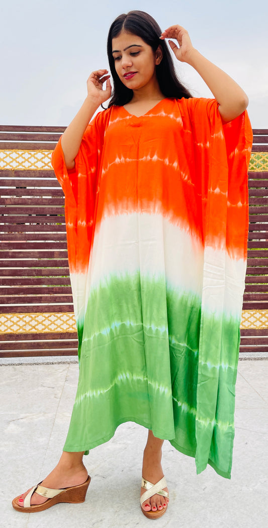 Hand Tie Dye Rayon Kaftan Dress, TriColor