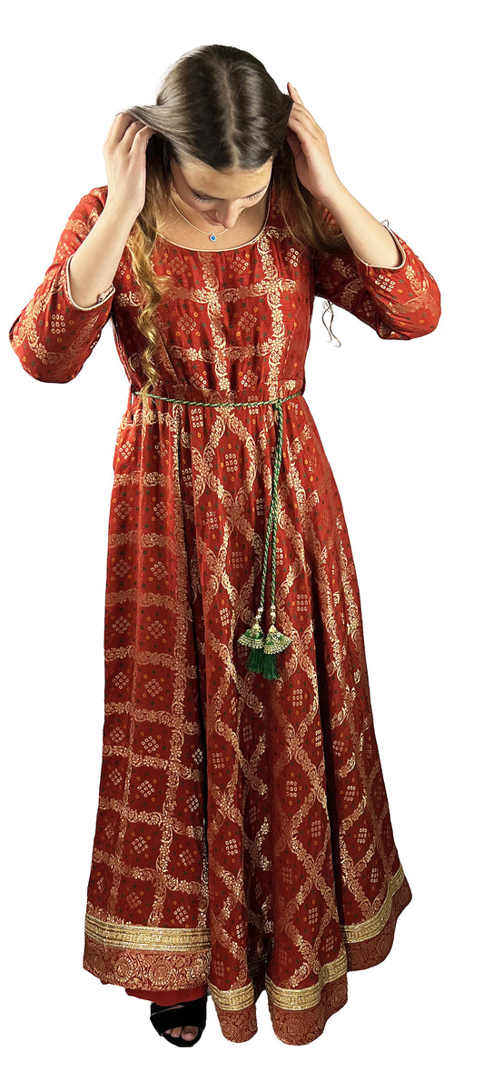 Pure Silk Long Black Brown Dress, Partywear Floor Length Dress with Black Dupatta