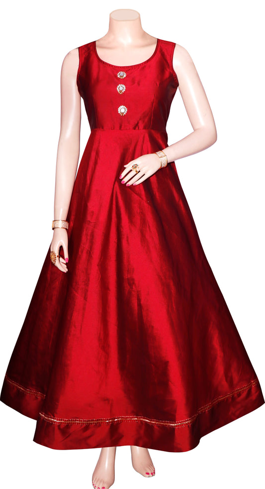 Maroon Color Pure Dola silk Long Gown/Anarkali Dress with net embroidered Dupatta