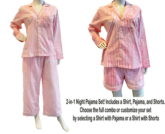 Pink 100% Cotton Light Ultra-Soft Night Dress Women Cotton Pants Shirt Set With Shorts Set