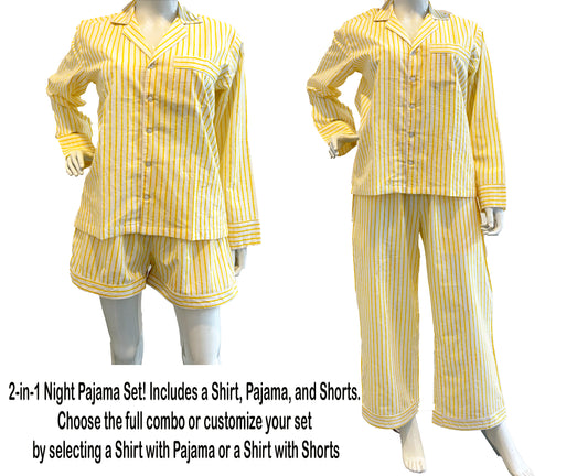 Yellow 100% Cotton Light Ultra-Soft Night Dress Women Cotton Pants Shirt Set With Shorts Set (Copy)