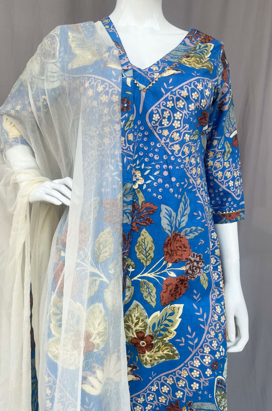 Blue and Cream Pure Cotton Indian Straight Pant Suit