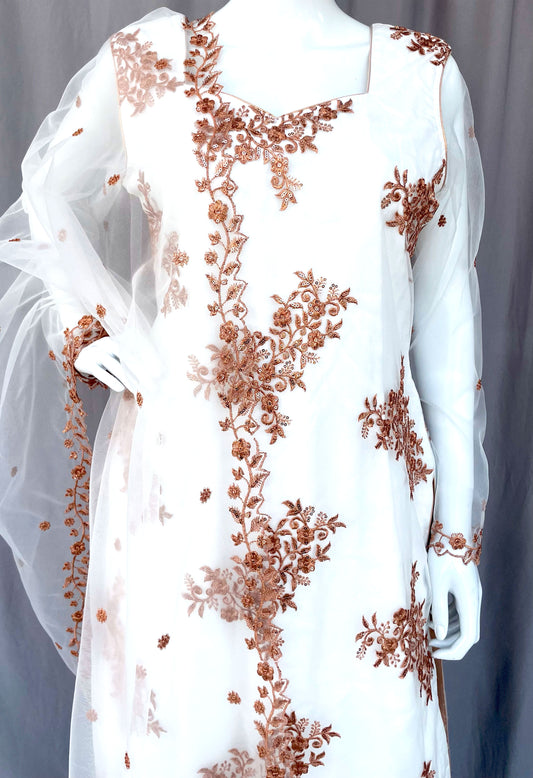 White Net Embroidered Punjabi Patiala Salwar Suit