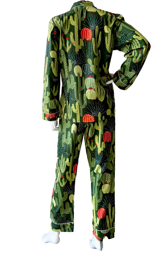 Green 100% Pure Cotton Cambric Women's Pajamas with Cactus Print