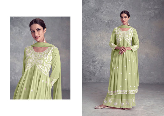Olive Green Purple Nyra Cut Palazzo Suit, Lukhnawi embroidery Palazzo Suit, Indian Ethnic wear