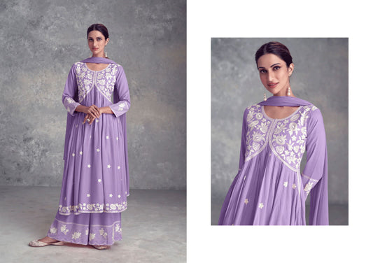 Pastel Purple Nyra Cut Palazzo Suit, Lukhnawi embroidery Palazzo Suit, Indian Ethnic wear, Pastel Color Palazzo