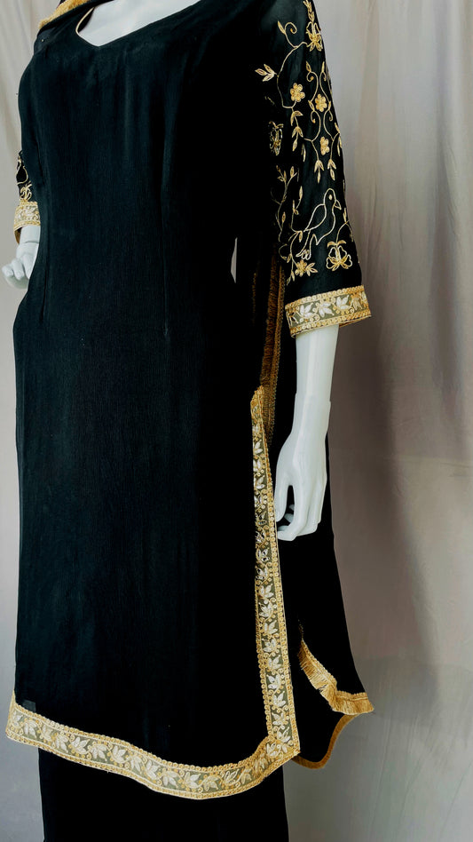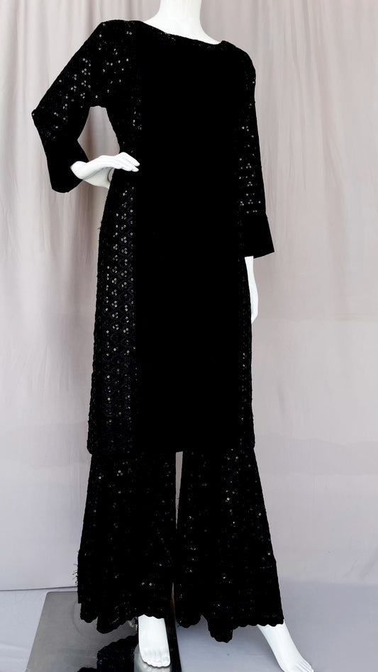 Black Rayon Sequins Sharara Suit with Hand Embroidery