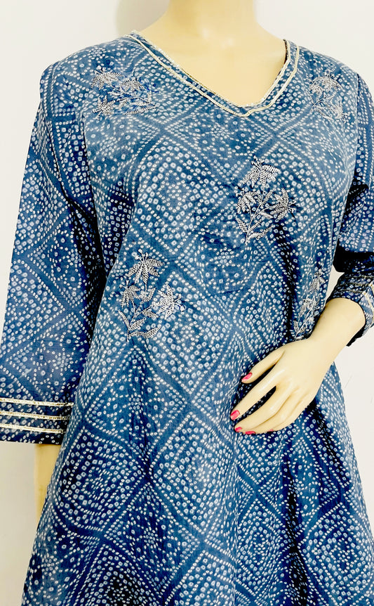 White and Blue Pure Cotton Sharara and Kurta Suit