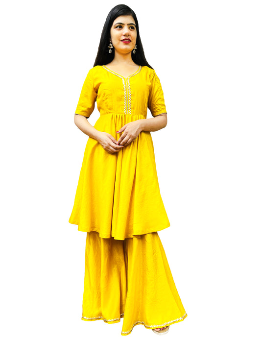 Yellow Silk Sharara Dress with Pure Chinon hand tie n dye Dupatta
