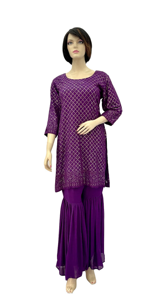 Easy to carry outfit, perfect for weddings. Sharara or Garara design comes in a range of embroidery, sequins work, gotta-patti work.