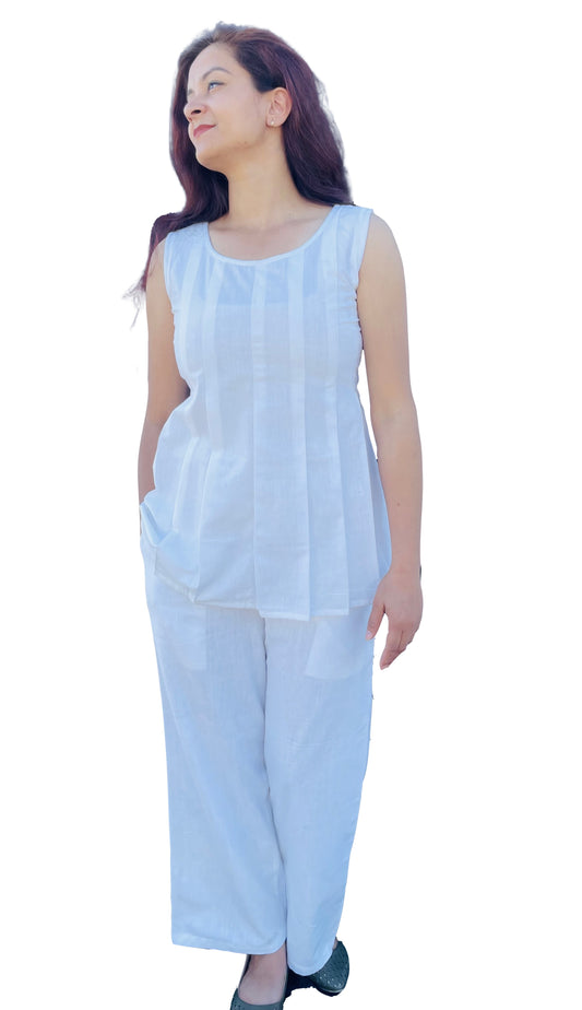 White Handmade Handloom Khadi pure cotton top and palazzo set