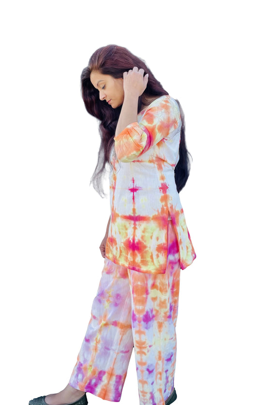 Tie Dye handloom handmade khadi multicolor top and Comfortable Palazzo Pant