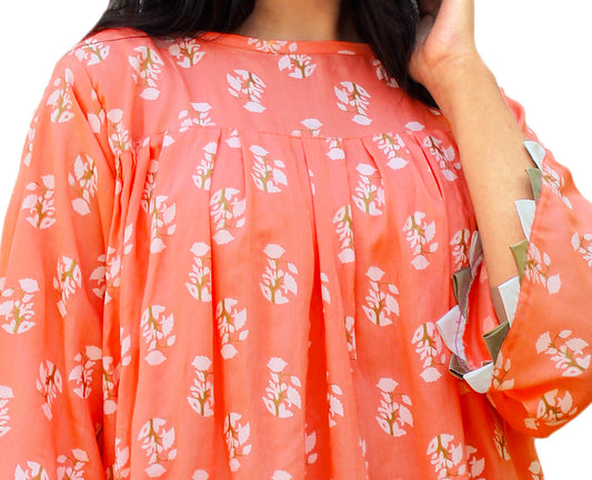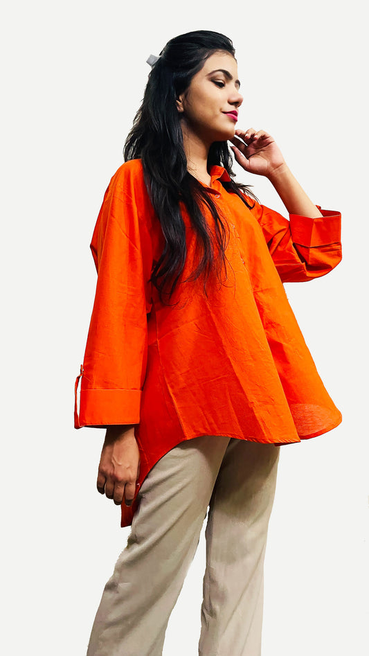 Orange Cotton Voile Design Neckline 3/4 Sleeves Tunic/Top AVT21352