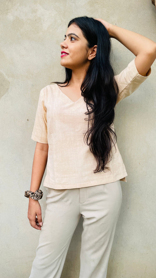 Summer Crop top Beige color made of Linen Khadi Fabric