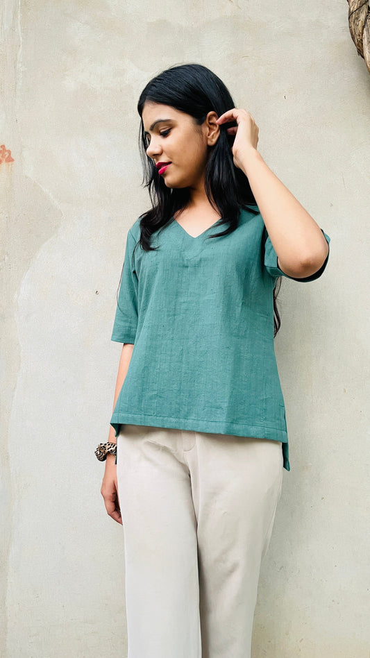 Summer Crop top Teal color made of Linen Khadi Fabric