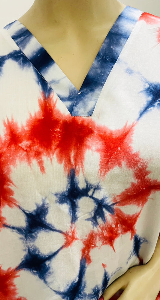 Red Blue White Tunic Rayon Summer Long Hand Tie dye