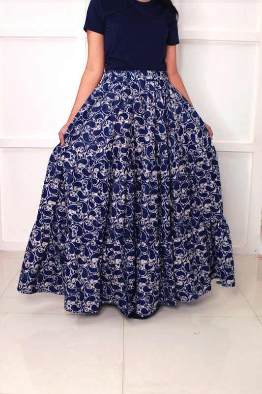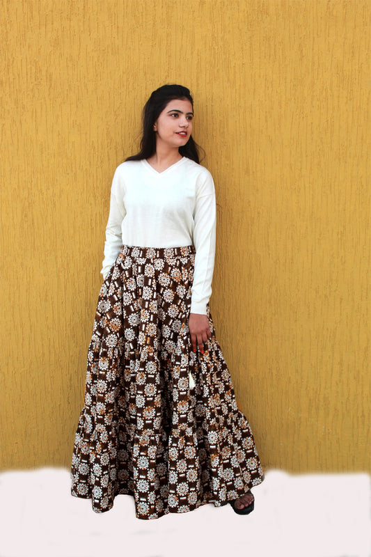 Black & Maroon Banarasi Long Kurti Lehenga Set