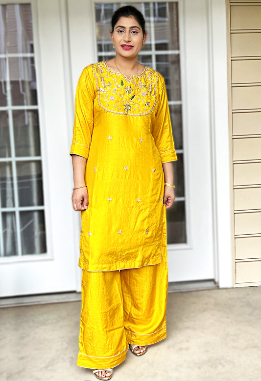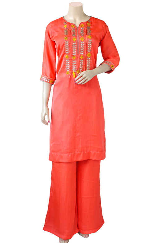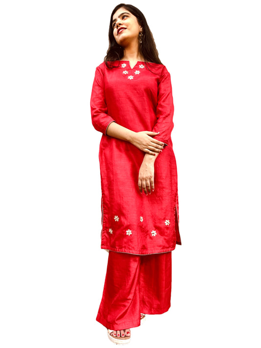 Red color, Gota Patti Handwork Kurti with Palazzo Pants & Dupatta Set