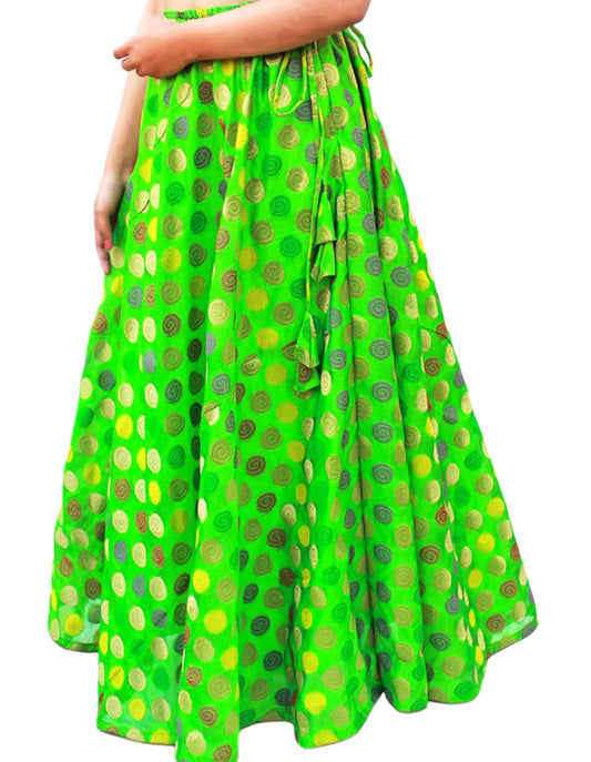 Dark Green & Neon Green color, Long Top Lehenga with Pure Chinon Dupatta Set