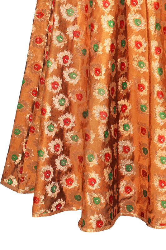 Multi Color Leaf zari Embroidered Banarasi Chanderi Silk Lehenga