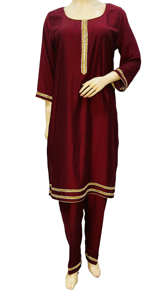 Maroon Golden Pant suit with Kurta Top and Dupatta with border