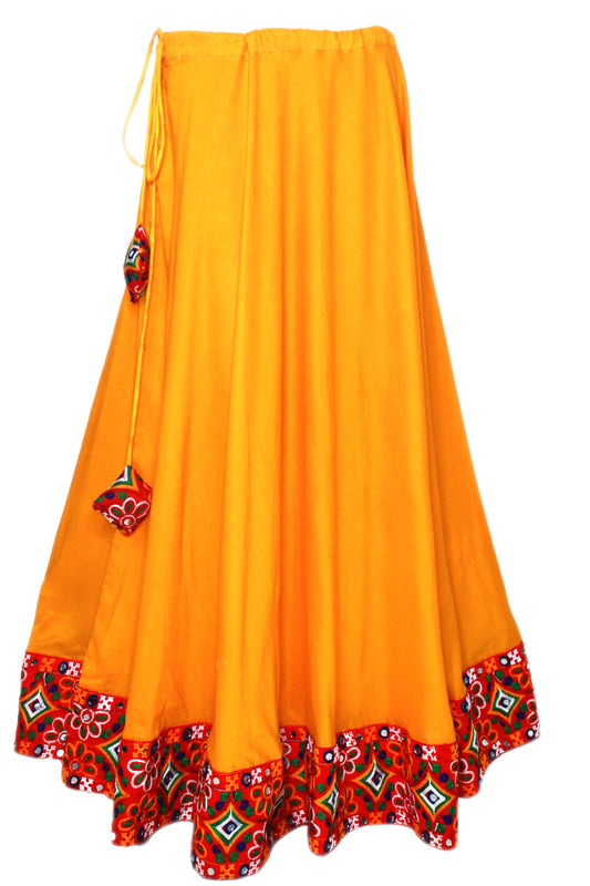 Yellow mustard color Gujarati Lehenga Skirt with Pendent Tie